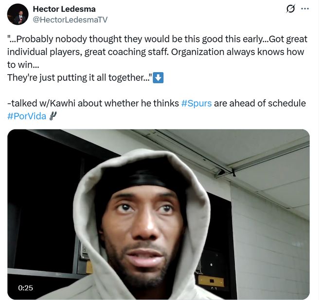 马刺队这样的表现也征服了旧将小卡,后者在赛后说道:“可能没人会想到他们这么早就这么强,他们有优秀的球员、优秀的教练团队,加上这个团队一直都知道如何取胜,他们只是将这一切完美地捏合在一起。”