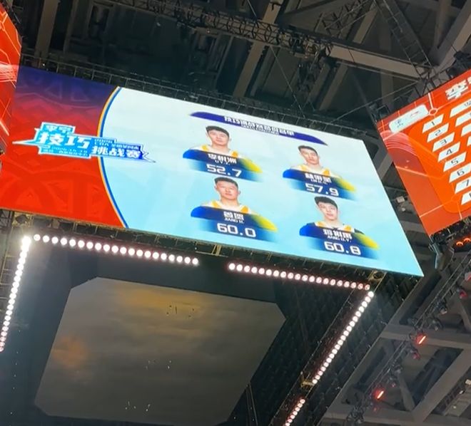 第四个是姜贺,两个中投都没有打进,幸好三个三分都可以打进,最终他的成绩是60秒。