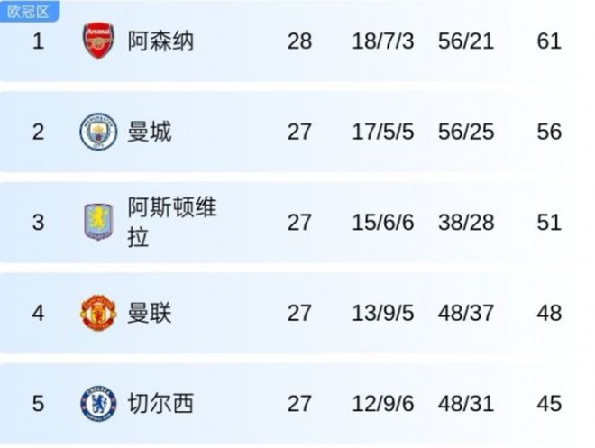 此役过后,曼联27轮积48分,领先第5名切尔西3分,距第3名维拉3分。维拉近期4场联赛仅1胜,切尔西和利物浦还在多线作战。