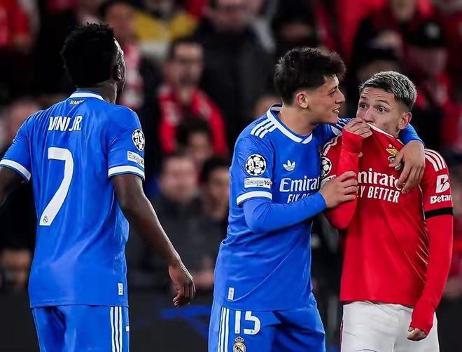 欧冠赛场,皇家马德里客场挑战葡超劲旅本菲卡,巴西巨星维尼休斯又双叒叕一次“被歧视”了!虽然“肇事者”普雷斯蒂安尼已经拉起球衣捂住了嘴、极力避免被唇语解读的风险,但我们还是可以相信姆巴佩或许真的长了一对可以数米开外听清对手压低声音的“顺风耳”,相信普雷斯蒂安尼或许是真的骂了维尼休斯为“猴子”,毕竟都是血气方刚的年轻人,怎能容忍一只猴子屡次在自己耳边嘲讽为“怂货”、“软蛋”?回个嘴也实属正常!再说了,瞧瞧维尼休斯那个双手提肩得意忘形的样子,活脱脱一只猩猩模样……