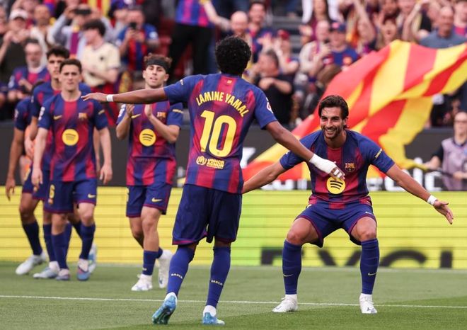 巴萨则在联赛高歌猛进。虽然巴萨将与马竞进行欧冠生死战,但这场联赛依然派上亚马尔等主力,毕竟当前情况下联赛冠军最为重要。结果,巴萨以4-1击败了西班牙人。费兰-托雷斯在第10分钟就头球破门。随后,亚马尔助攻费兰再进一球。下半场洛萨诺扳回一球。最后时刻巴萨接连进球。亚马尔和拉什福德各进一球,彻底踢爆西班牙人。巴萨以79分高居榜首,领先身后的皇马9分,夺冠形势一片大好。
