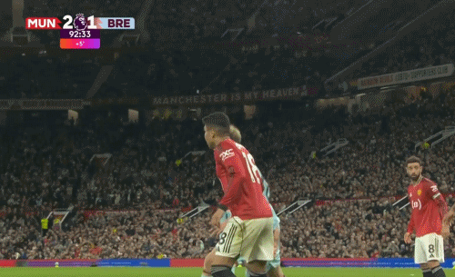 在下半场进入伤停补时阶段之后,只有一球领先优势的曼联急需稳住局面,此时卡塞米罗在一次争顶当中利用了内森-科林斯手上的动作当即倒地,从而让主裁判克里斯-卡瓦纳判罚了对手的犯规。